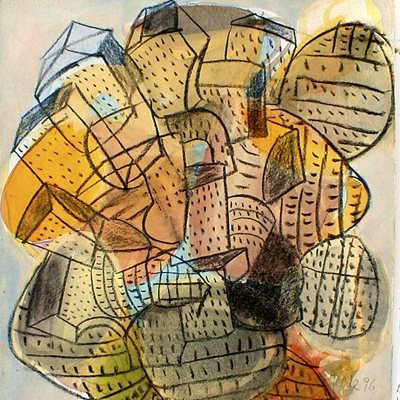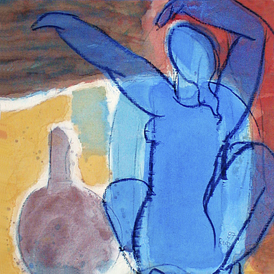 The first quick look at her paintings gives often an impression of spontaneity and freshness of a sketch. In reality they are a fruit of long maturation, as wittnessed by an almost systematic recourse to series. It is predominantly the series, or more exactly, the series of nude women, that traverse all her work. A sitting woman from behind, en face, in profile. A woman in movement - swimmer, gymnast or dancer. A woman alone or in a group, in the dominating blue or ocher... There is also a bestiary, populated by birds, dogs, horses and imaginary beasts; there are still-lives composed of familiar objects. Some subjects cross each other, so you can find a town at the heart of a series of portraits or filling the body of a woman.